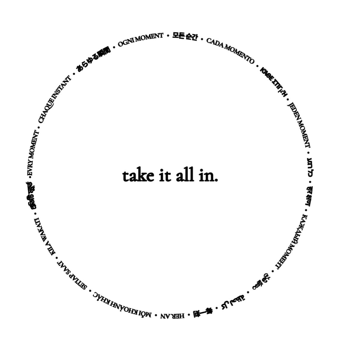 Made to be a gentle reminder to slow down and be present. Surrounding the design on the back, is evry moment translated into over 19 different languages, symbolizing the shared experience of living, feeling, and growing.